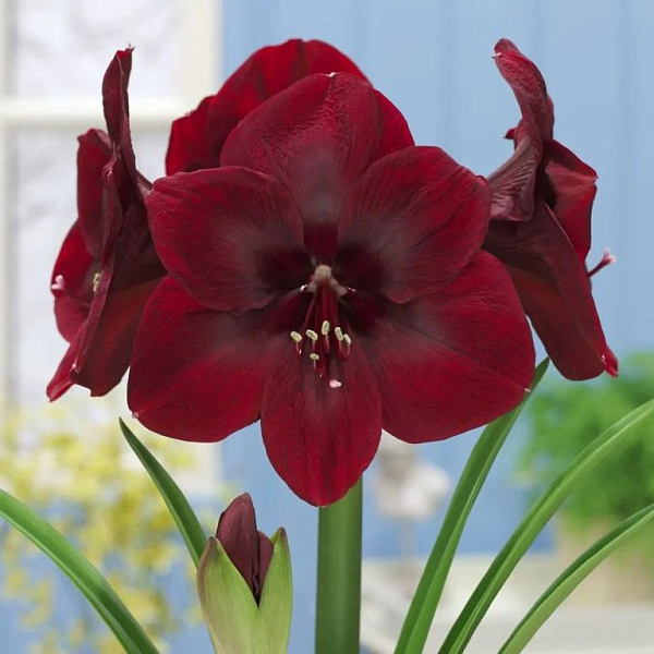 Амариллис простой премьер - это великолепное растение с плотными, насыщенно-гранатово-красными цветками, которые украсят ваш сад или комнату в мае, июне и апреле. Высота этого растения может достигать 50-70 см, а размер цветка составляет 15-25 см. Летом листва амариллиса имеет темно-зеленую окраску, что создает красивый контраст с яркими цветками.