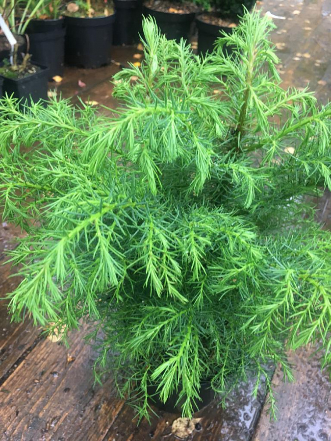 Саженцы Криптомерии японской Элеганс Виридис (Elegans Viridis) – декоративное, универсальное растение, с плотной, но мягкой кроной конусообразной формы. Хвоя зимой обретает красноватый оттенок, а к лету приобретает сине-зеленый оттенок. А вот шишки – редкое явление для данного растения. Криптомерия японской Элеганс Виридис лучше высаживать в местах, где достаточное количество солнечного света или присутствует полутень. Благоприятна и умеренно увлажненная почва, плодородная и слабокислая. Морозоустойчивость очень высокая, но лучше криптомерию высаживать с другими более морозоустойчивыми хвойными деревьями: такая компания будет особенно благоприятной.