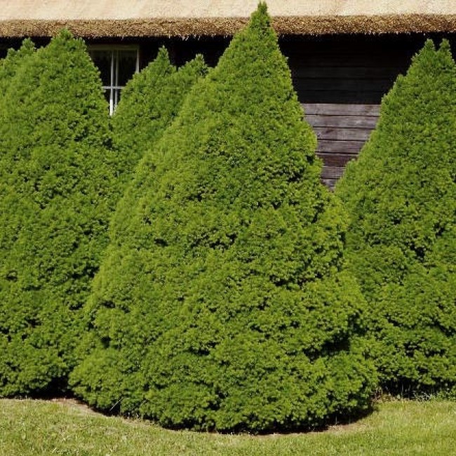 Саженцы Ели канадской Коника Децембр (Picea Conica) — один из самых декоративных и неприхотливых сортов. В условиях умеренного климата он переносит жару и заморозки, может находиться на открытом солнце либо в полутени. В год ель может прибавлять до 15 см в высоту, а крупные представители этого вида достигают 1,5—2 м. Ель Коника Децембр отличается симметричной конусовидной формой кроны. Этот сорт стоит приобрести тем, кто не желает заниматься ее формированием либо не имеет достаточно опыта в ландшафтном дизайне. Даже без вмешательства она остается густой, пышной и мягкой, равномерно нарастая в виде конуса.