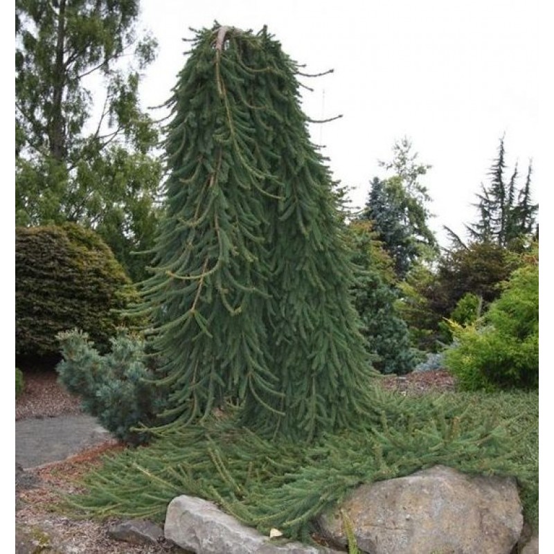 Саженцы ели обыкновенной Фробург (Frohburg) вырастают в стройные хвойные деревья с декоративным шлейфом из плакучих ветвей. Хвоя – дымчато-зеленая, короткая и жесткая. Одинаково эффектно смотрится в массовых посадках и как солитер.Ель обыкновенная Фробург вырастает на 10 см в год, и в 15 лет крупномер достигает 2-2,5м. Яйцевидные шишки из зеленых созревают в бордово-коричневые.