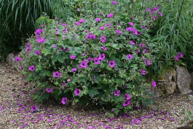 Саженцы герани Драгон Харт (Dragon Heart) отличаются тем, что зимует без дополнительного укрытия до -20 С. Это кустообразный многолетник, который относится к самому большому сорту. Его высота всегда превышает 40 см. Саженцы герани Драгон Харт любят солнце и хорошо дренируемую почву. Могут расти в полутени. Период цветения приходится на начало июня и продолжается до конца сентября. Имеет ярко-лиловые цветы с черными прожилками, исходящими от центра цветка. Раскидистые листья, широкие, на прочных стеблях, легко формируют объемный, красивый куст.