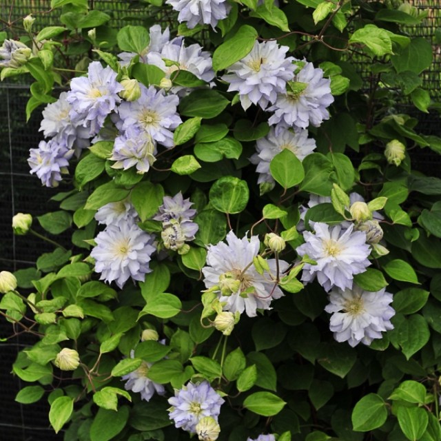 Саженцы клематиса гибридного Вероника Чойс (Veronica's Choice) любят тенистые и безветренные места у невысоких ограждений и кустарников. Несмотря на роскошный вид, клематис гибридный Вероника Чойс (Veronica's Choice) не нуждается в сложном уходе и его могут позволить себе даже начинающие цветоводы. На протяжении лета на растении распускаются сиренево-белые, махровые цветки с нежным сладковатым ароматом. Клематис гибридный Вероника Чойс (Veronica's Choice) обладает устойчивостью к возбудителям болезней.