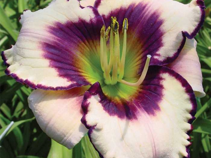 Рассада лилейника гибридного Блюберри Сэндей (Blueberry sundae) порадует великолепным видом и потрясающе нежным ароматом цветущих растений. Для сорта характерна необычная расцветка: белоснежные лепестки с темным краем, к центру резко становятся пурпурными. Окрас горла, как и тычинки, имеет желтый оттенок. Кусты высотой до 65 сантиметров прекрасно подойдут для комбинированных или солитерных посадок. Для посадки рассады лилейника гибридного Blueberry sundae лучше всего подходят солнечные, защищенные от ветра участки. При необходимости кусты можно разместить в тени.
