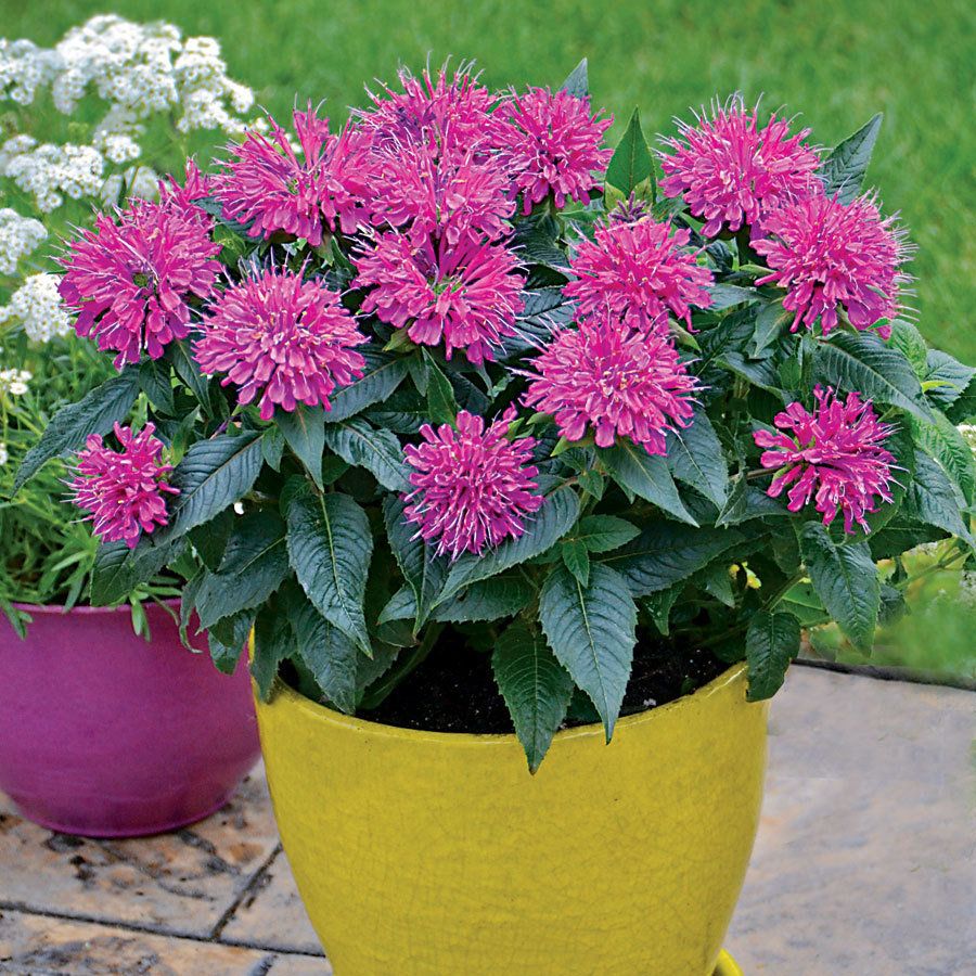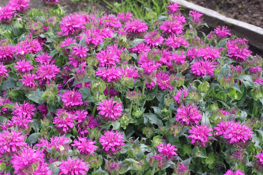 Рассада монарды гибридной Перпл Лэйс (Purple Lace) очень компактная и подходит для высадки в контейнеры и вазоны или вдоль бордюров и дорожек. Ее высота составляет всего 30-40 см, при этом стебли прямостоячие, с обилием ароматных темно-зеленых листьев, которые используются в качестве пряности.
