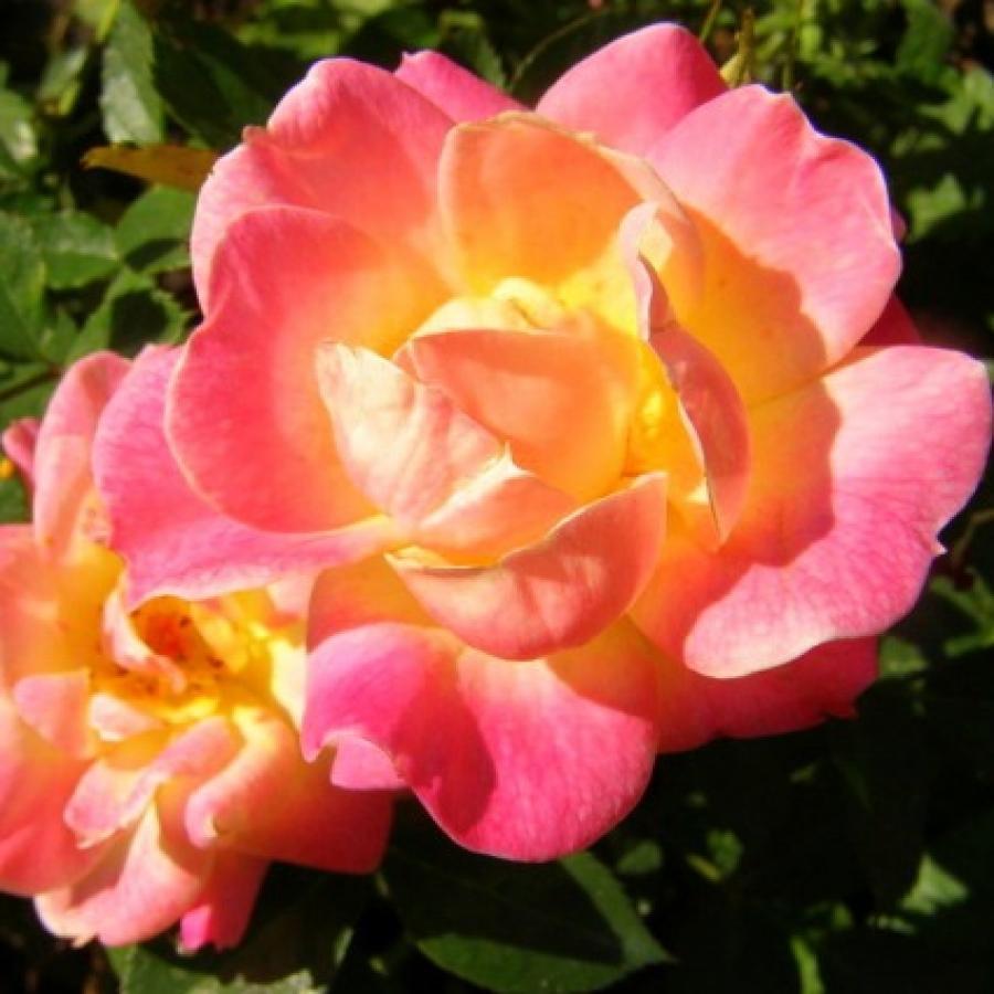 Саженцы розы полиантовой Камео (Cameo) вырастают в изящные миниатюрные кусты с махровыми цветами необычного желто-розового оттенка, похожими на огоньки пламени. Такой оригинальный эффект дает переход от оранжевого цвета к розовому на лепестках. Цветы собраны в кисти и издают легкий сладкий аромат. Взрослые кусты очень компакты, максимальная высота 40-45 см. Аккуратная форма кроны, тонкие, но прочные побеги с блестящей зеленой листвой. Крупномеры в период активного роста нуждаются в регулярном поливе и рыхлении. Сорт устойчив к морозам и хорошо сопротивляется грибкам и болезням. Особенности посадки розы Камео: